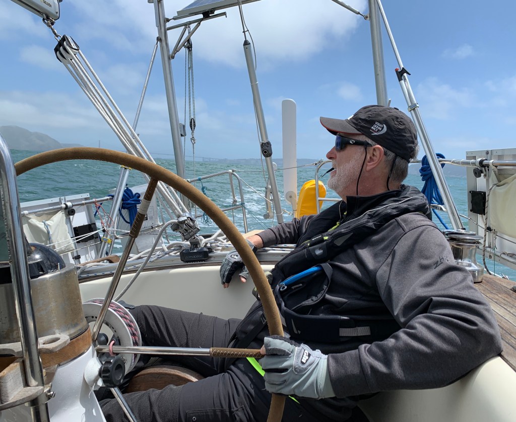 David Perkins at the helm of Skiron. I’m enjoying the ride!