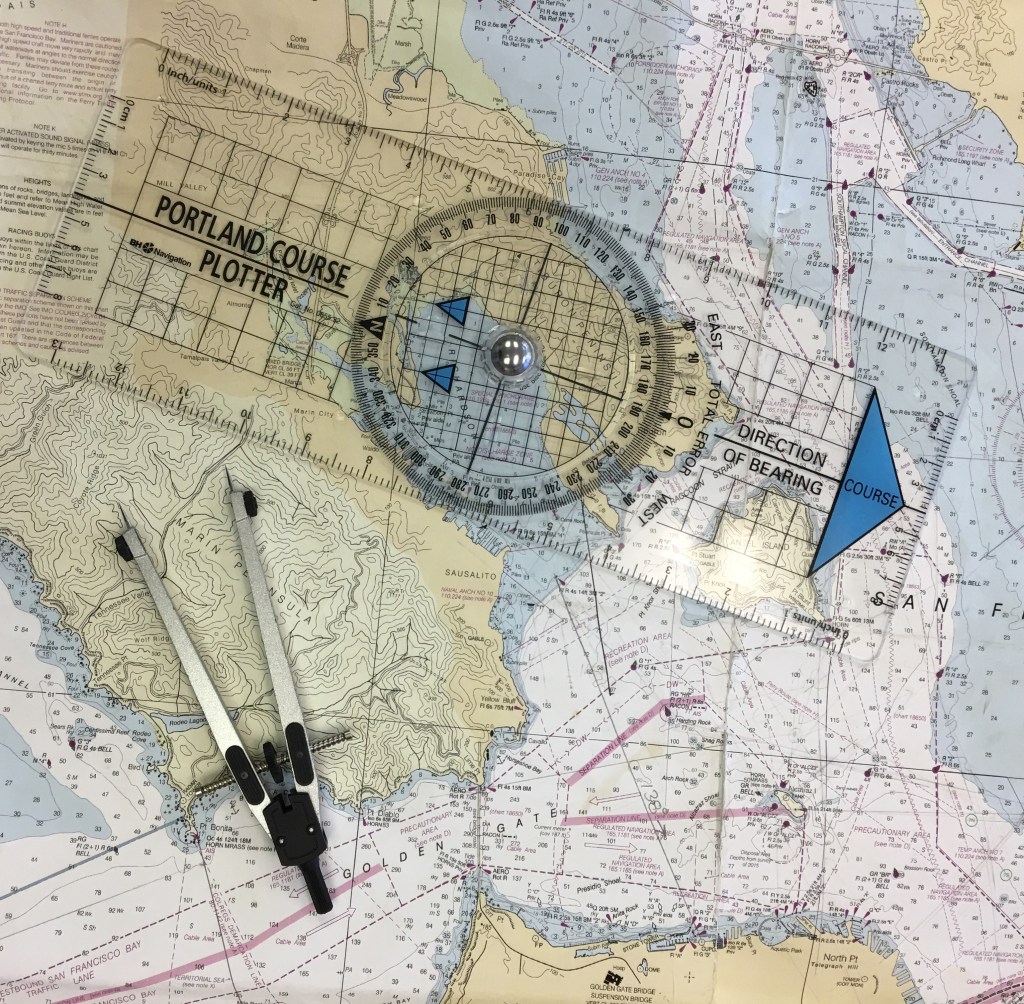 As mentioned, I thoroughly reviewed and re-reviewed the textbook. I made sure that I understood everything in a chapter before proceeding to the next. As mentioned above, I supplemented my learning with the Annapolis book of Seamanship and looking up certain things on the Internet if I felt that I needed a different sort of description. I obtained and reviewed all of the slides that were used by the instructor during the course. In fact, I reviewed all of the slides twice. I was provided the homework assignments and practice charts by Club Nautique. I did every homework assignment. Doing so will enable you to learn to use the tools of navigation. It’s a lot of work. I firmly believe, however, that the repetition and work at home on your table, or in the classroom at a table, is a necessity, and a bit of a luxury, in preparation for doing it on a moving sailboat boat in the ocean, at night, in the cabin, where there is no horizon as you’re enclosed…..and you might be tempted to vomit. Ha ha. It’s true, though. I would recommend doing at least a couple of homework problems at night, in the dark, with a red light headlamp so that you can at least emulate the process of doing navigation in a low light setting as you will be required during the night sail of your coastal passage making course. Remember, all of this learning is to develop the basic core fundamental knowledge of navigation so that you can apply it in a real time setting on the water. Imagine that situation as you begin to learn and master this material. Knowing that it has practical value should be a motivation to learn. Believe me. Everything you learn in this class is useful to you whether you are sailing the coast of California, the Seychelles, Croatia and even if you are staying put and keeping to the San Francisco Bay.