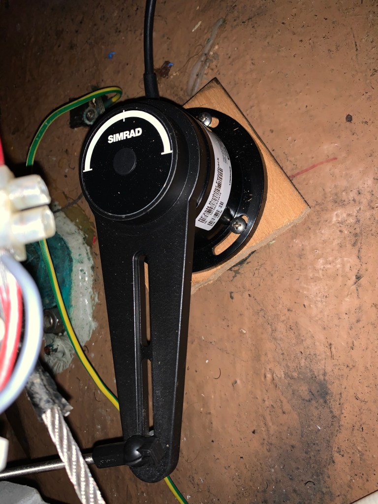 The autopilot system is attached to the steering system by way of a driver that actuates the course changes. The driver is mechanical linear drive by Raymarine that is attached to the starboard side of the quadrant. Of course, given the autopilot steers a course, the system must have an electronic compass. A computer does all of the work in regards to maintenance of course, user input changes, etc. A sensor is attached to the port side of the quadrant so that the computer knows the rudder position. An autopilot controller is located at the helm to permit activation, course changes, and more.