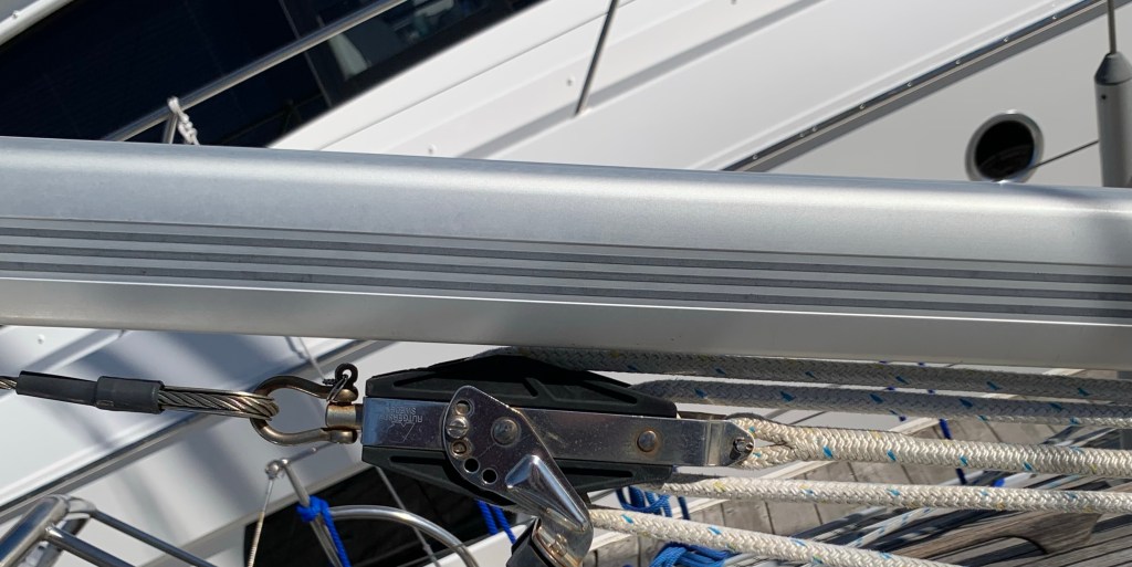 Some tension the vang on a close-hauled point of sail but this is usually unnecessary as the mainsheet should be sufficient. I’ve even had to detension the vang when close reaching to allow that top telltale to flutter backwards! Let the main do the work.