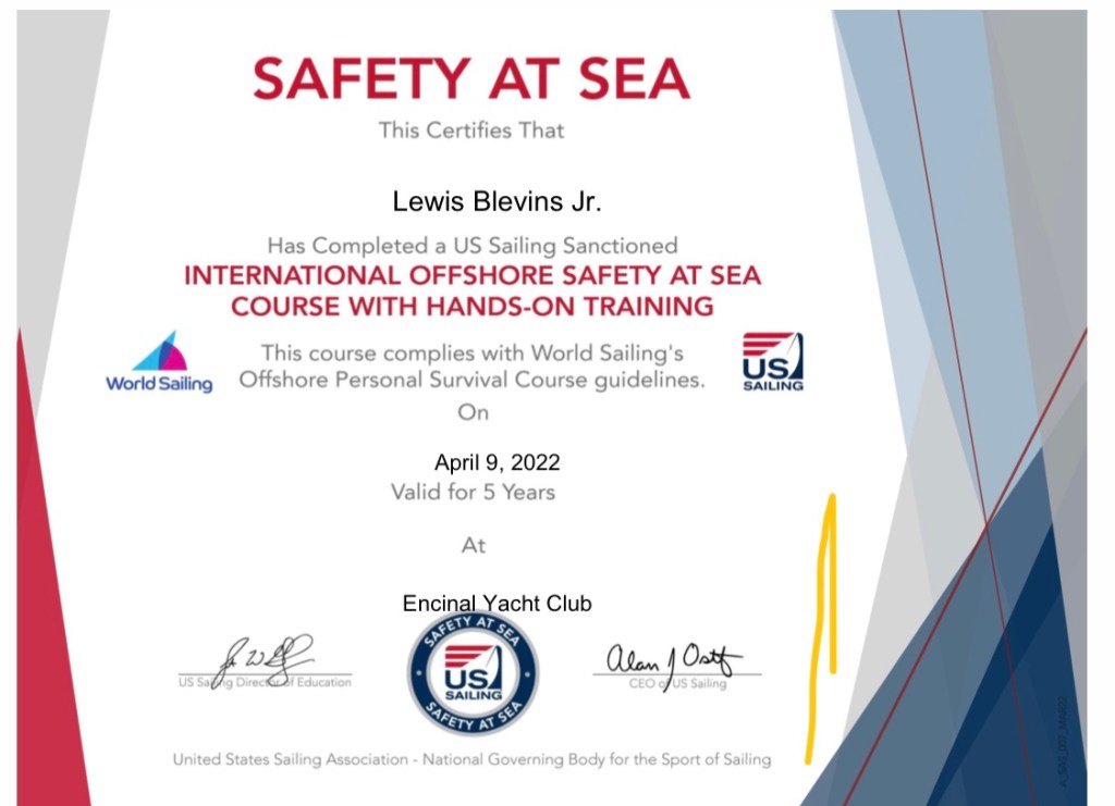 The hands-on experience at the Encinal Yacht Club in Alameda was superb! enjoyed meeting several legends in sailing who were hired as instructors. I also enjoyed meeting other sailors working to achieve certification in this arena.